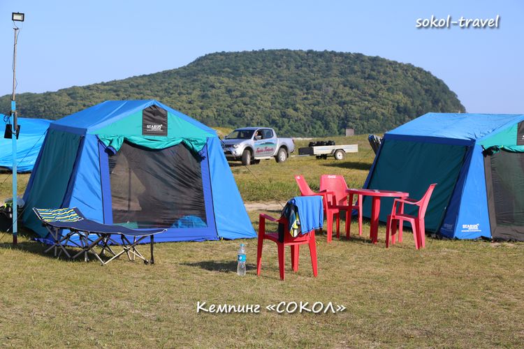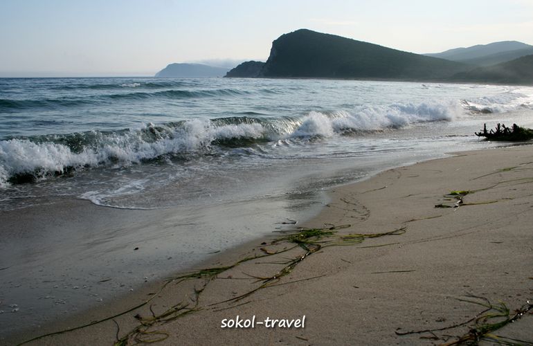 Бухта Петрова – уникальное место на карте Приморского края и по праву является настоящим природным Чудом! Что делает ее такой притягательной и манящей?! Конечно же, это мельчайший кварцевый песок, нежный и ласковый, который выстилает прибрежную полосу длинной около одного километра и шириной около 200 метров! Загорать на таком песке не только райское блаженство, но и естественные целебные процедуры! Именно за мелодично свистящий на ветру песок, наблюдательные и благодарные туристы, бухту Петрова поэтически прозвали «Бухтой Поющего Песка». Очень важным фактором для качественного морского отдыха является высокая прозрачность воды, а она достигает видимости свыше 30 метров и это наилучший показатель для прибрежных вод Приморского края! Купание и ныряние в бирюзовых волнах бухты не забудется уже никогда, проверено временем! Бухта является зоной 100% экологического отдыха, свободного от грохота дискотек и шума гидроциклов, когда отдыхает и набирается силами природы собственный организм, радуется и поет от детского восторга Душа! Представьте, после жаркого и знойного дня прохладный вечер у теплого и неторопливого костра, над головой безграничная манящая вечность Млечного Пути и только посвист близких пятнистых оленей напоминает, что мы все еще на Земле! Бухта Петрова является хранителем еще одного Чуда, не менее значимого чем она сама-Острова Петрова! Остров-легенда, с этим соглашается любой, посетивший его! В бухте Петрова расположен кемпинг «СОКОЛ», в котором есть все необходимое для отдыха в этом благостном месте. В вашем распоряжении высокие кемпинговые палатки различной вместимости, летний душ, укрытия от солнца и дождя, столовая со здоровым и вкусным питанием, набор различных увлекательных экскурсий к близрасположенным достопримечательностям. Кемпинг «СОКОЛ» в бухте Петрова – место, где живет Счастье!