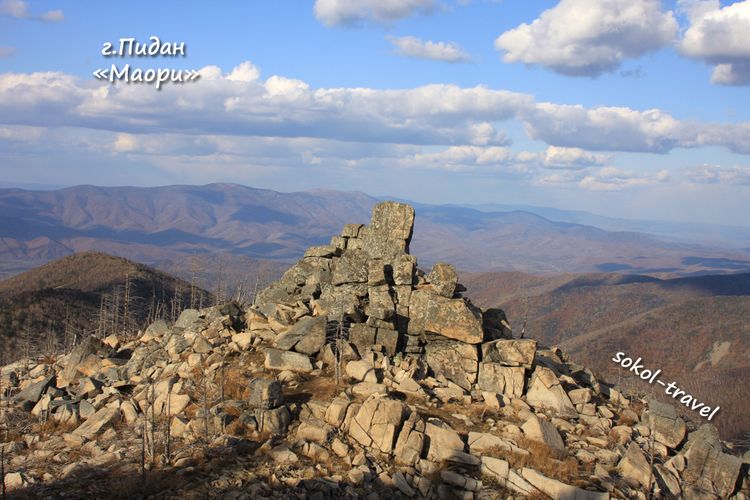 Южное Приморье. Вершина хребта Ливадийского - могучий, магический и таинственный Пидан, который возвышается на 1332 метра над уровнем Японского моря. Начальная часть восхождения достаточно проста, где таежный ключ ОйРа дарит целую россыпь небольших но очень звонких водопадов. За несколько часов подъема взору предстанет несколько растительных зон: долинный тропический лес, горные хвойно-широколиственные леса, каменистые осыпи горной пустыни, тундру Крайнего Севера. Перед нами откроется великолепный вид на бесконечную череду бархатных хребтов и отрогов Сихотэ-Алиня, бухты и побережье залива Петра Великого. Конечно же не останутся незамеченными рунические надписи и магические символы, навевающие на посетителей ореол таинственности и мистицизма. Величественные и неприступны каменные постройки открытого всем ветрам хребта, на котором смогла поселиться карликовая береза и декоративная своим видом микробиота. Бытует легенда о рукотворности каменных сооружений, которые трактуются как "камни, рассыпанные богом". Поднявшись на вершину вы можете убедится в этом сами. Ну вот и сбылось Ваше заветное желание, ВЕРШИНА! Как птицы «летают» свободные и впечатлительные, кружится голова и поет душа, мимо пролетают перекатываясь через вершину облака! Маршрут рассчитан на участников со средним уровнем физической подготовки без явных отклонений в состоянии здоровья.