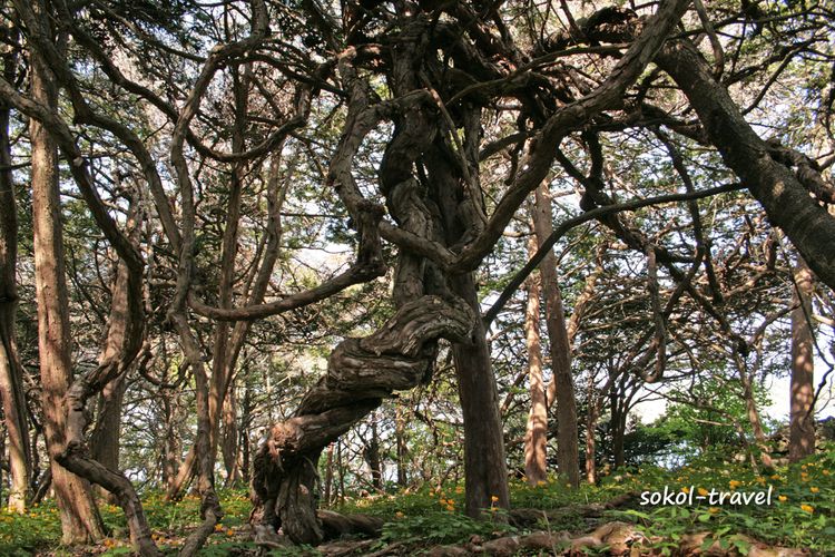 Остров Петрова (Лазовский заповедник) расположен в одноименной бухте и символически соединяется с берегом подводной каменной косой, которая, согласно древней легенды, являлась когда-то дорогой, сооруженной жителями острова. За ним прочно закрепилось название Остров-легенда! Главная достопримечательность острова - единственная в мире островная тисовая роща, по одной из версий, высаженная в виде иероглифов около тысячи лет назад, что визуально может подтвердить любой посетитель рощи. В сказочный ландшафт тисовой рощи гармонично вписываются более чем вековые липы, которые трудно назвать деревьями за их индивидуальность и неповторимый характер. Волшебство рощи дополняет извилистая спираль лианы актинидии ( в народе, киш-миш) возрастом 1200 лет, которая плодоносит, несмотря на свой почтенный возраст. Остров уникален и своим разнообразием растительности (около 300 видов) и по сути это естественный ботанический сад, созданный самой природой. Очень многое, происходящее на Острове, не поддается объяснениям, оно просто существует вне нашего понимания... Может именно эта, манящая и таинственная неизвестность, привлекает уже много лет сотни туристов, которые спешат доверить древнему тису свои сокровенные желания и омолаживаются чистыми водами источника с «живой водой»! На рубеже перехода весны в лето остров Петрова открывает на короткое время взорам туристов космическое зрелище, цветение в тисовой роще желтого лесного мака, единственного вида семейства маковых, произрастающего на Дальнем Востоке! Катерно-пешеходная экскурсия на остров Петрова вдохновляет. Остров помогает в исполнении самых сокровенных желаний и это не рекламный ход, а проверенная временем уверенность. Для посещения острова Петрова предлагается несколько вариантов: однодневная экскурсия из Владивостока; 2-х и 4-х дневные маршруты с посещением острова; экскурсия (2.5 часа) на остров для отдыхающих в Экологическом кемпинге «СОКОЛ» в бухте Петрова.