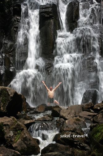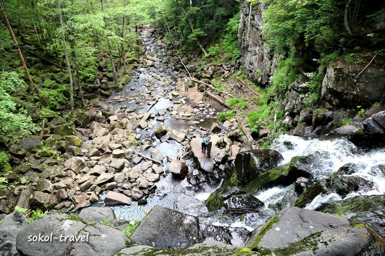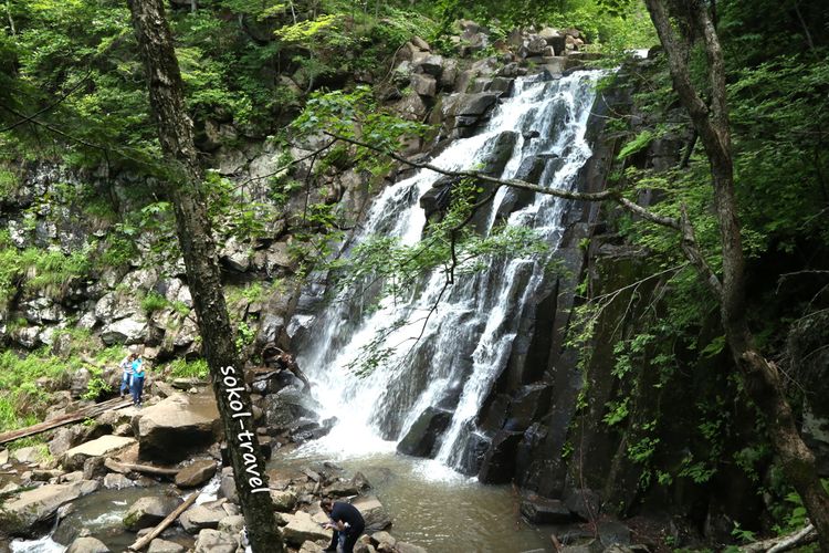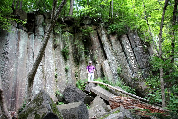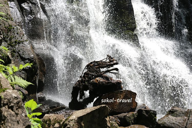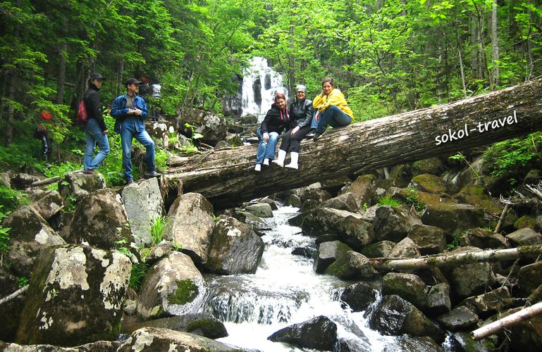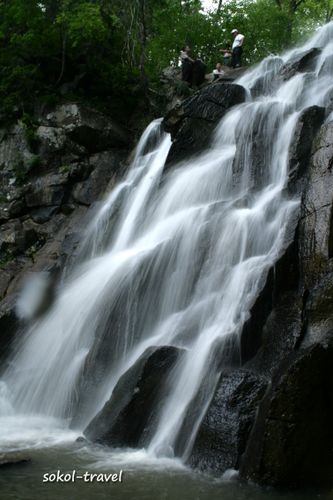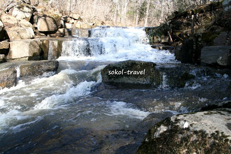 Самым красивым водопадом Южного Сихотэ-Алиня по праву считается водопад «Неожиданный» или «Горбатый». Его высота около 15 м. Ключ медленно течет по плато и неожиданно срывается в мрачное ущелье с высоты пятиэтажного дома. Тысячи брызг, сверкающих на солнце, висят в воздухе, напоенным таежным ароматом. Он находится нана Шкотовском плато на ключе Левый Горбатов, который является притоком речки Стеклянухи. Последняя, в свою очередь, впадает в реку Шкотовку (старое название Цимухе). Истоки Стеклянухи находятся на Шкотовском плато, в центре которого возвышается гора Обрубленная (902 м). От неё во все стороны веером расходятся ручьи и речки, которые, вбирая в себя на своем пути новые притоки, образуют небольшие реки. К таким и относится река Шкотовка (длина 59 км). Из Владивостока до водопада «Горбатый» около 110 км, из них 10 по сильно разбитой лесовозной дороге. Лесная дорога сразу круто идет в гору, вернее вьется серпантином почти до самого перевала. На всем пути следования она проходит среди пышной уссурийской растительности. Поднявшись на высоту примерно 500 метров дорога проходит по хребту. С одной стороны хребта, слева, глубоко внизу протекает ключ Левый Горбатов, а с другой стороны, справа, стоит стена хвойного леса. Если идти по дороге тихо, то можно увидеть пробегающих здесь косуль, кабанов и других лесных обитателей. Бывает встречаются и отпечатки тигриных лап на влажной дороге. При приближении к водопаду он появляется неожиданно. От этого видимо произошло его название. Здесь речка, плавно несущая свои воды по довольно ровной поверхности плато, вдруг резко бросается метров на 10 вниз и затем по глубокому каменному каньону с шумом и пеной продолжает свой бег дальше. Водопад необычайно красив. Скала, с которой поток воды падает вниз, как бы представляет собой стену древнейшего сооружения, а образующая порода имеет карандашеподобный вид шестиграннника. В 1902 году эту речку, километрах в 10 ниже по течению, пересек отряд В.К. Арсеньева. Впоследствии он в своей книге «Дерсу Узала» по этому поводу писал: «Долину, по которой протекает речка, здешние переселенцы называют «Стеклянной падью». Такое название она получила от китайской фанзы, в окне которой был вставлен небольшой кусочек стекла.