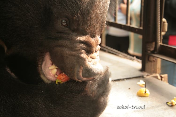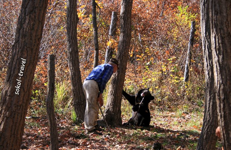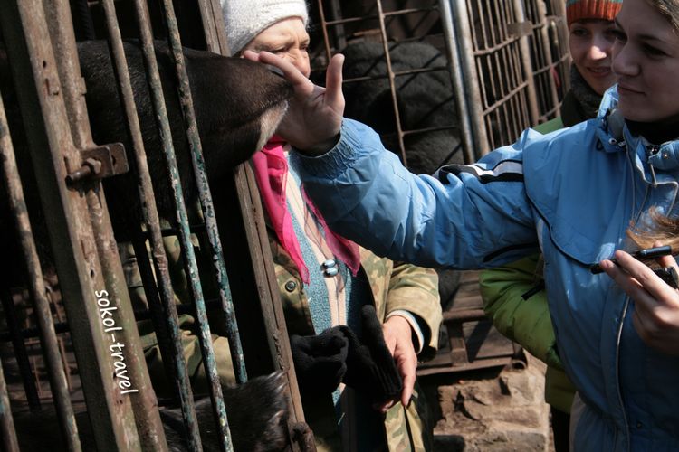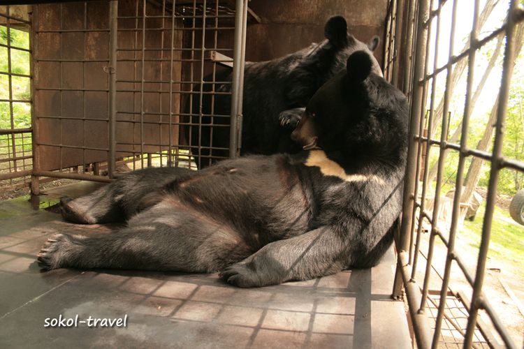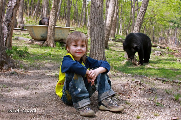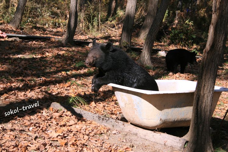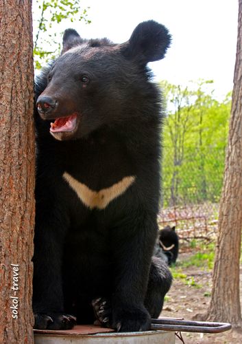 Гималайский медведь или белогрудый — вид млекопитающих из отряда хищных. Белогрудого медведя иногда выделяют в отдельный род «Лунных медведей» за белое пятно в виде полумесяца на груди. Гималайский медведь по величине почти вдвое меньше бурого и отличается от него более стройным телосложением, тонкой остроносой мордой, большими округлыми ушами; передние лапы сильнее задних. Самцы этого вида 150—170 см длиной, высота в холке около 80 см, весят 120—140 кг. В России обитает в основном на территории Приморского края и южной части Хабаровского. Рацион этого зверя состоит на 85 процентов из корма растительного происхождения. Это орехи (кедра корейского, лещины, маньчжурского ореха и кедрового стланика), желуди дуба монгольского, травянистые растения (побеги, корневища и луковицы), ягоды и плоды. Долгое время мы ездили на экскурсии смотреть белогрудку в село Дубовый Ключ недалеко от г.Уссурийска, где в 1995 году был создан «Пункт передержки молодняка диких животных», официально взятый под опеку краевого департамента охоты. В нем проходили реабилитацию раненые дикие животные и детеныши, чьи матери были убиты браконьерами. Но в 2005м году управление по охране, контролю и регулированию использования охотничьих животных Приморского края было расформировано. С тех пор приют для брошенных животных существовал на частные средства пенсионеров супругов Лещенко и пожертвования частных лиц. Иван Григорьевич и Любовь Григорьевна Лещенко проводили душевные, прекрасные познавательные экскурсии по своему питомнику с юмором и любовью. Название экскурсии - "Солнечные Мишки", говорит само за себя. Иван Григорьевич – охотовед с 40-летним стажем и большой любитель животных. Многие медведи были практически ручными, веселясь среди приезжающих туристов, купаясь в ванне и поедая йогурт из магазинной упаковки. До сих пор вспоминается «смертельный номер» в исполнении Ивана Григорьевича с «японским ужем», который вылетал из бака (в виде мохнатой палки) на напуганных и кричащих посетителей, детей и взрослых. Ивана Григорьевича Лещенко не стало и эта публикация посвящается чудесному Человеку и его великой Душе!